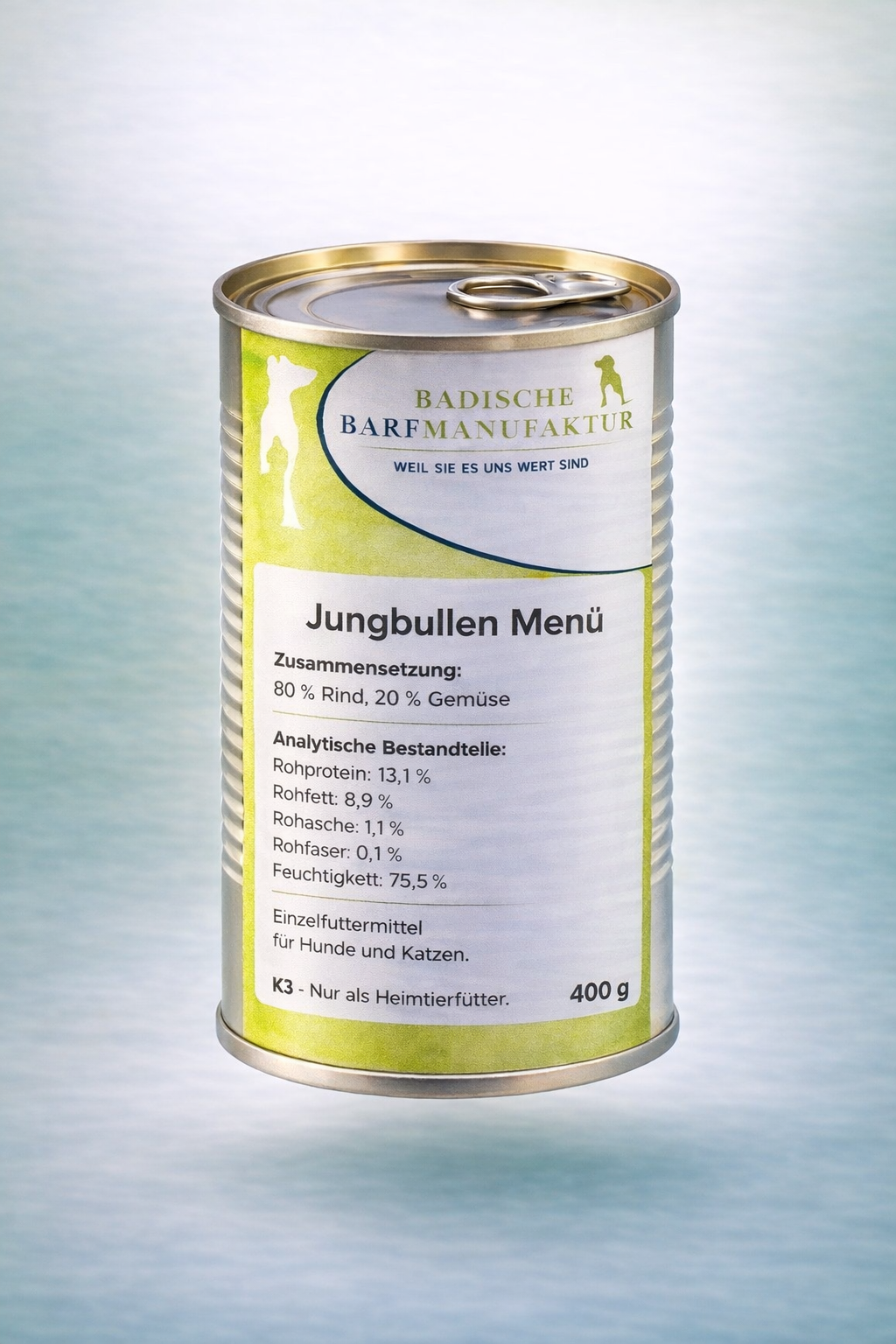 BBM Badische Barf Manufaktur Jungbullen in der Dose 400g ( 80% Rind, 20% pflanzlicher Anteil)