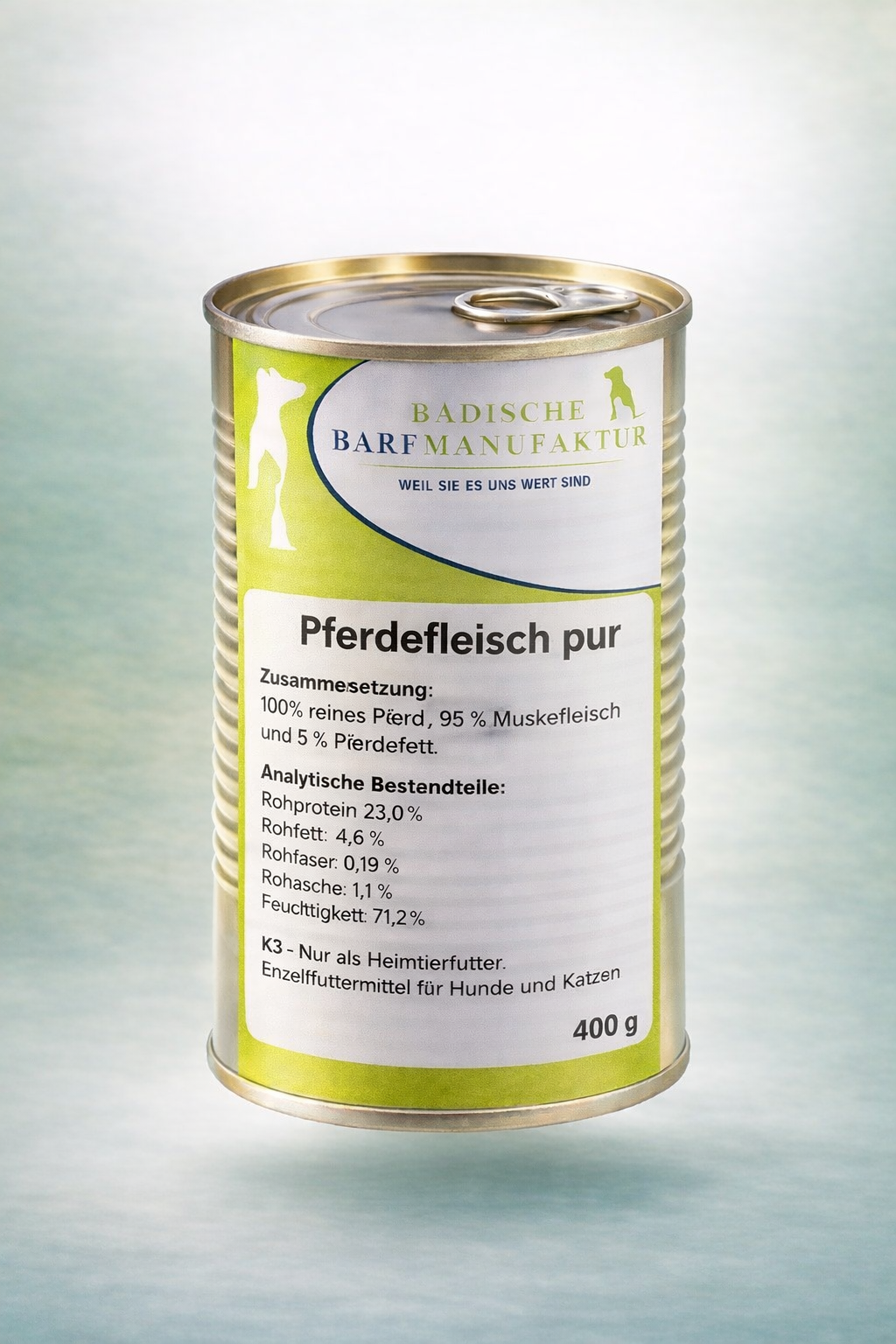 BBM Badische Barf Manufaktur Pferdefleisch Pur in der Dose 400g